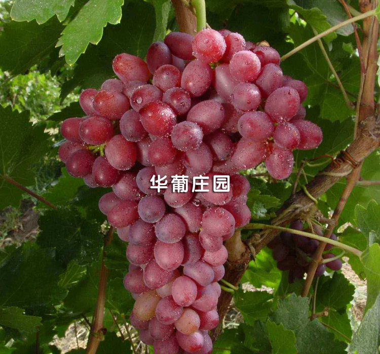克瑞森:是美國加州繼紅提葡萄之后推出的又一無核葡萄品種。1997年由農(nóng)業(yè)部葡萄新品種項目課題組引進我國,經(jīng)過4年在國內(nèi)試種,我國葡萄專家在綜合考察其生長狀況、果實性狀和市場前景后認為,該品種是較有發(fā)展?jié)摿Φ臒o核葡萄品種。果實亮紅色,充分成熟后為紫紅色,上有較厚白色果霜,橢圓形。果穗中等大,有歧肩,圓錐形。平均穗重500克。果肉淺黃色,半透明肉質(zhì),果肉較硬,果皮中等厚,不易與果肉分離,味甜,低酸,品質(zhì)極佳。 |